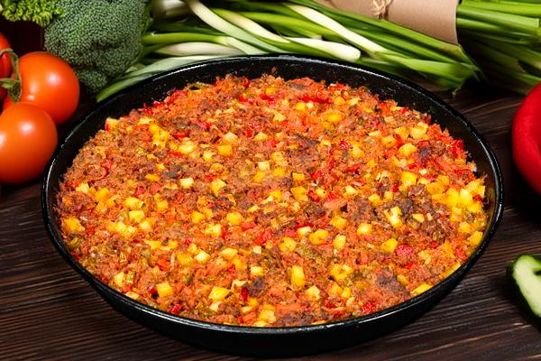 Mevsiminin taze sebzeleri ile Gaziantep’in en favori tavası olan Saçma Tavası. Et ve sebzelerin nefis birleşimi burada.